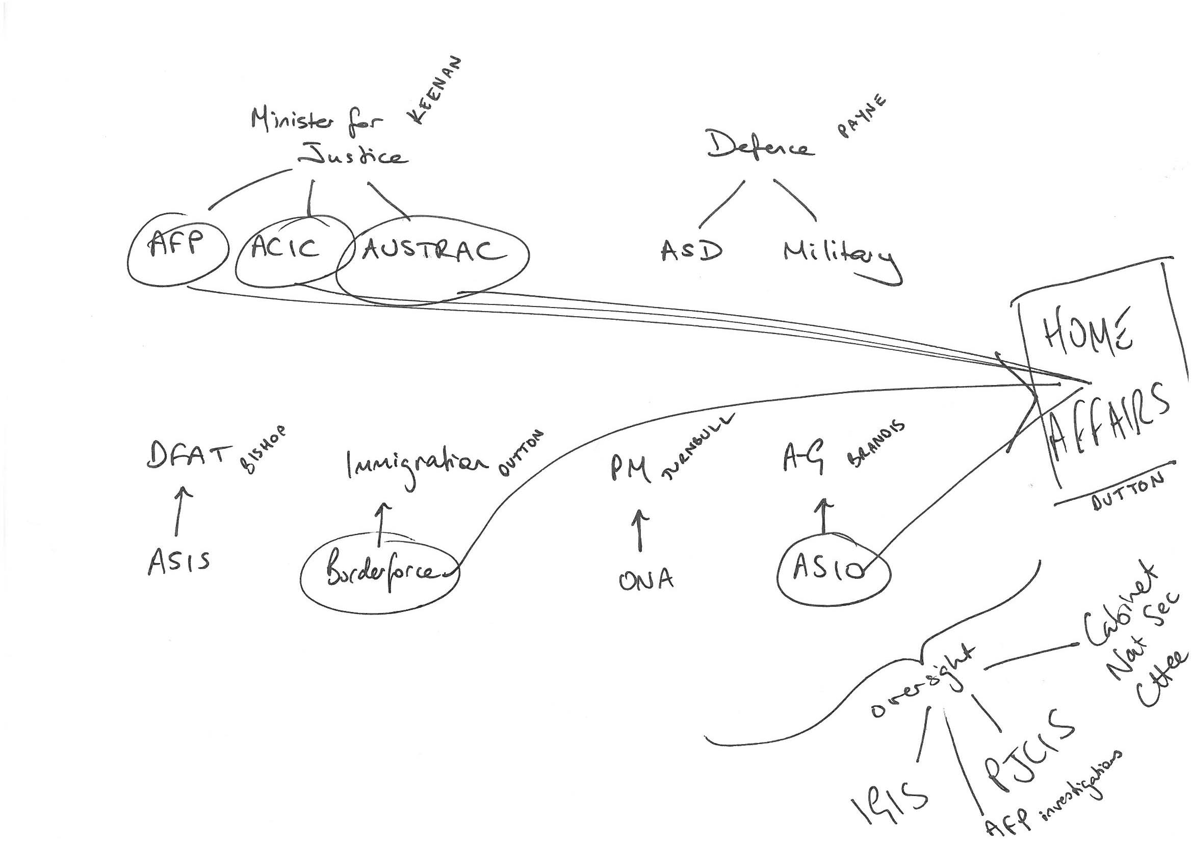 Which brings us to the Office of National Intelligence (and Director of National Intelligence). This is all based on recommendations in Michael L’Estrange’s Independent Review of the AIC. The Review outlined four priority areas: better coordinating structures for the AIC; new funding measures to address capability issues; streamlining of legislative arrangements; and measures to reinforce public trust in the agencies. The ONI will sit in the Department of Prime Minister and Cabinet, and at first feels a bit like a re-branding of the ONA, but on a second reading it’s clear the Review outlines expanded responsibilities: