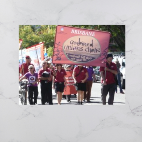 The Brisbane Combined Unions Choir has been singing since 1988 to raise awareness of issues of importance to working people and the broader community. We are a community choir open to all who share our belief in social justice and union values.